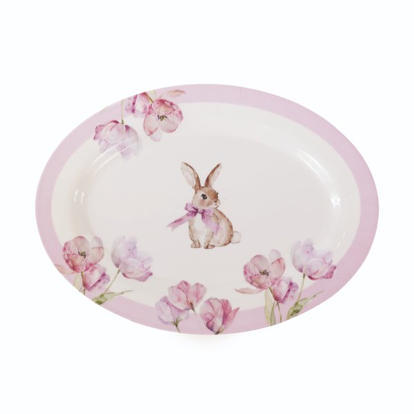 Delicada e cheia de charme, esta bandeja oval em melamina é perfeita para compor mesas postas de Páscoa com elegância e doçura. A estampa floral em tons suaves, combinada com o adorável coelhinho, traz um visual acolhedor e encantador para servir com estilo.
