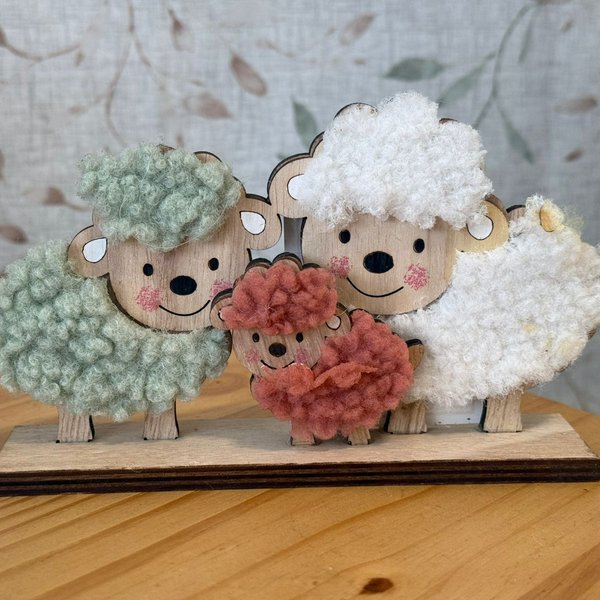 Encante sua decoração de Páscoa com essa linda família de ovelhinhas! Produzidas em MDF, com detalhes em pelúcia macia e acabamento delicado, elas transmitem ternura, aconchego e um toque artesanal irresistível. A composição em base única valoriza ainda mais a peça, criando um visual harmonioso e acolhedor.