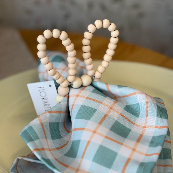 Deixe sua mesa ainda mais charmosa com este porta-guardanapo em madeira, com design delicado de orelhinhas de coelho, ideal para composições afetivas e temáticas. Produzido com contas de madeira e acabamento fosco, ele traz um toque artesanal, acolhedor e moderno à decoração.
