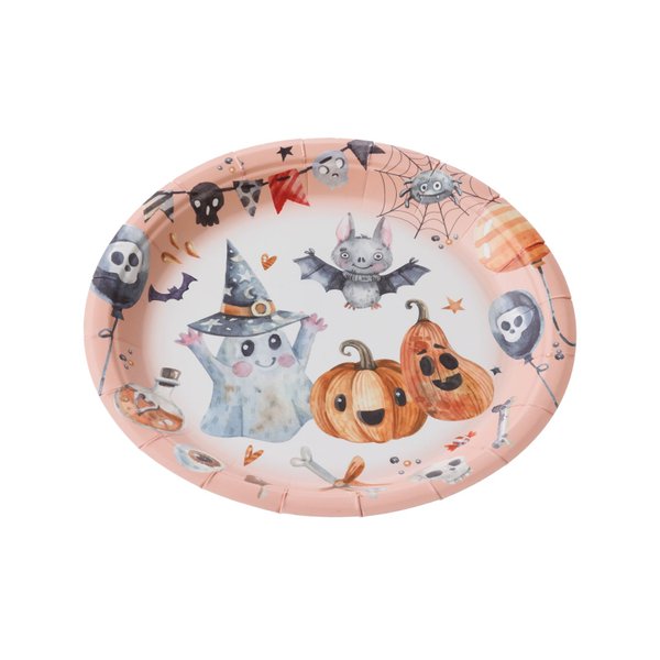 Prato de Papel 18 cm – Halloween - Estampa de Fantasminha, Abóbora e Morcego. Deixe sua festa no clima do Halloween com os pratos de papel de 18 cm! Com estampa super fofa e alegre, eles são ideais para servir doces, salgados e deixar a decoração ainda mais temática. Além de práticos e descartáveis, garantem muito mais estilo e praticidade para a sua comemoração assustadoramente divertida!